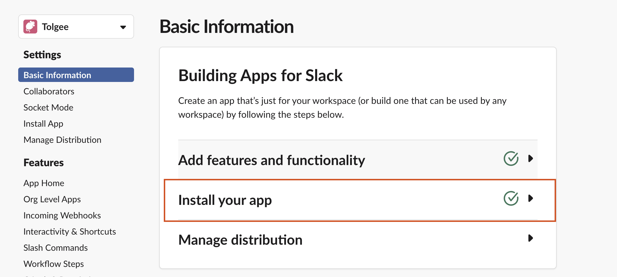 1. Create and Install the Tolgee App in Slack